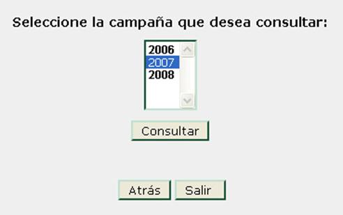 aparecerá la siguiente ventana donde deberá seleccionar el año de la campaña y