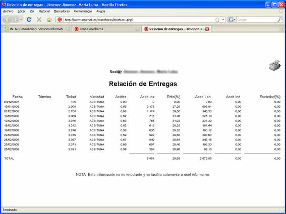 entregas que podrá imprimir haciendo clic sobre la imagen de impresora situada en la parte superior derecha del informe.